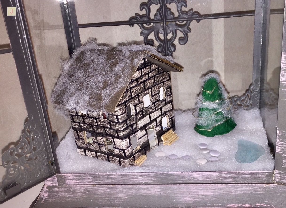 Natürlich wollte ich auch unbedingt meine schöne Laterne für Weihnachten dekorieren und da kam mir die Idee, ein kleines Steinhaus zu basteln, einen Tannenbaum und einen gefrorenen Teich und natürlich sollte alles mit Schnee bedeckt sein.