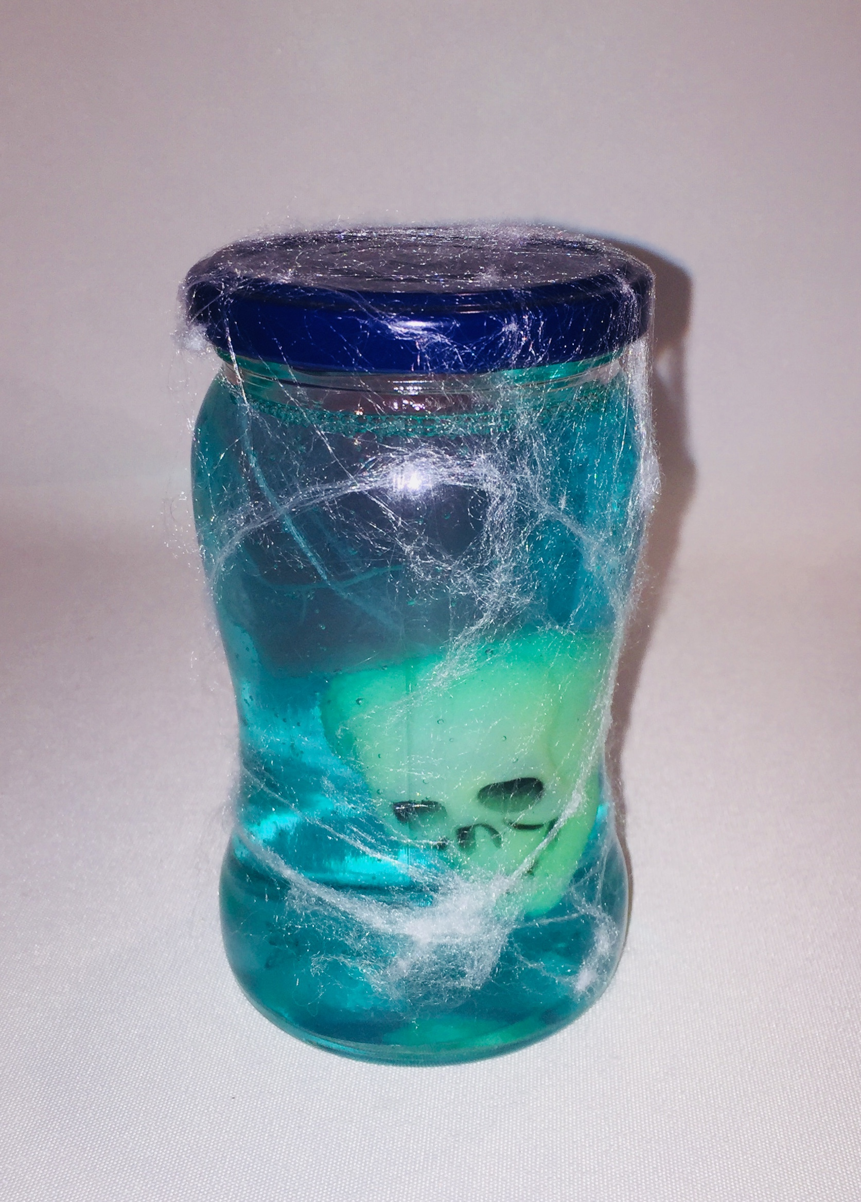 Now just close the jar real tight and wrap some fake spider webs around the glass.