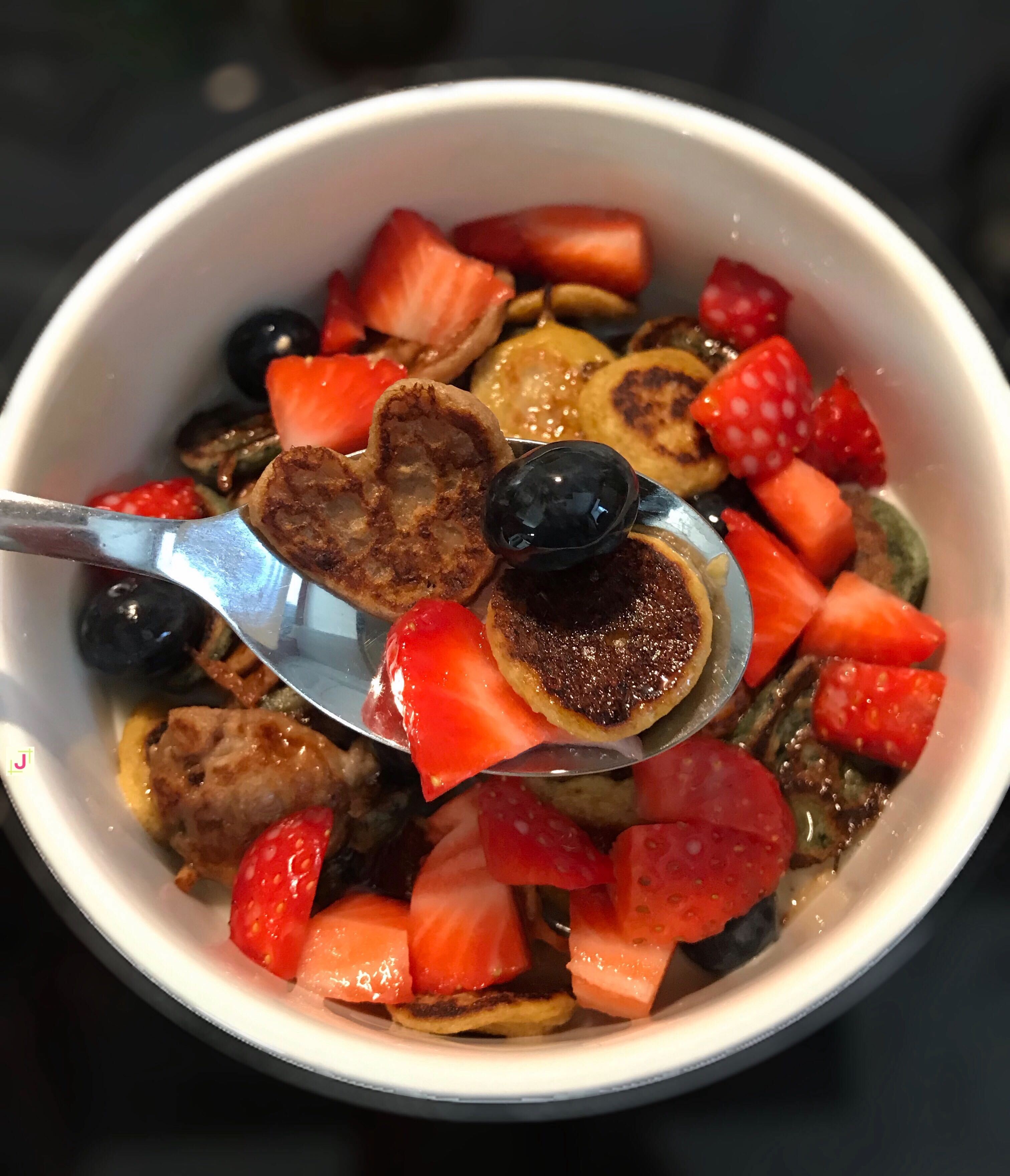 Sehen diese Mini Pfannkuchen nicht einfach mega lecker aus und man kann sogar die unterschiedlichen Farben erkennen und schmecken.