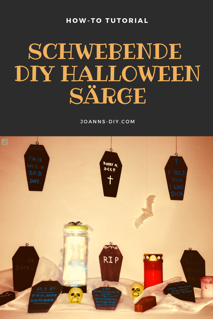 Falls du noch auf der Suche nach einer einfachen DIY Halloween Deko bist, dann warum nicht ein paar schwebende DIY Halloween Särge basteln und diese z.B. als eine Art von Mobile aufhängen.