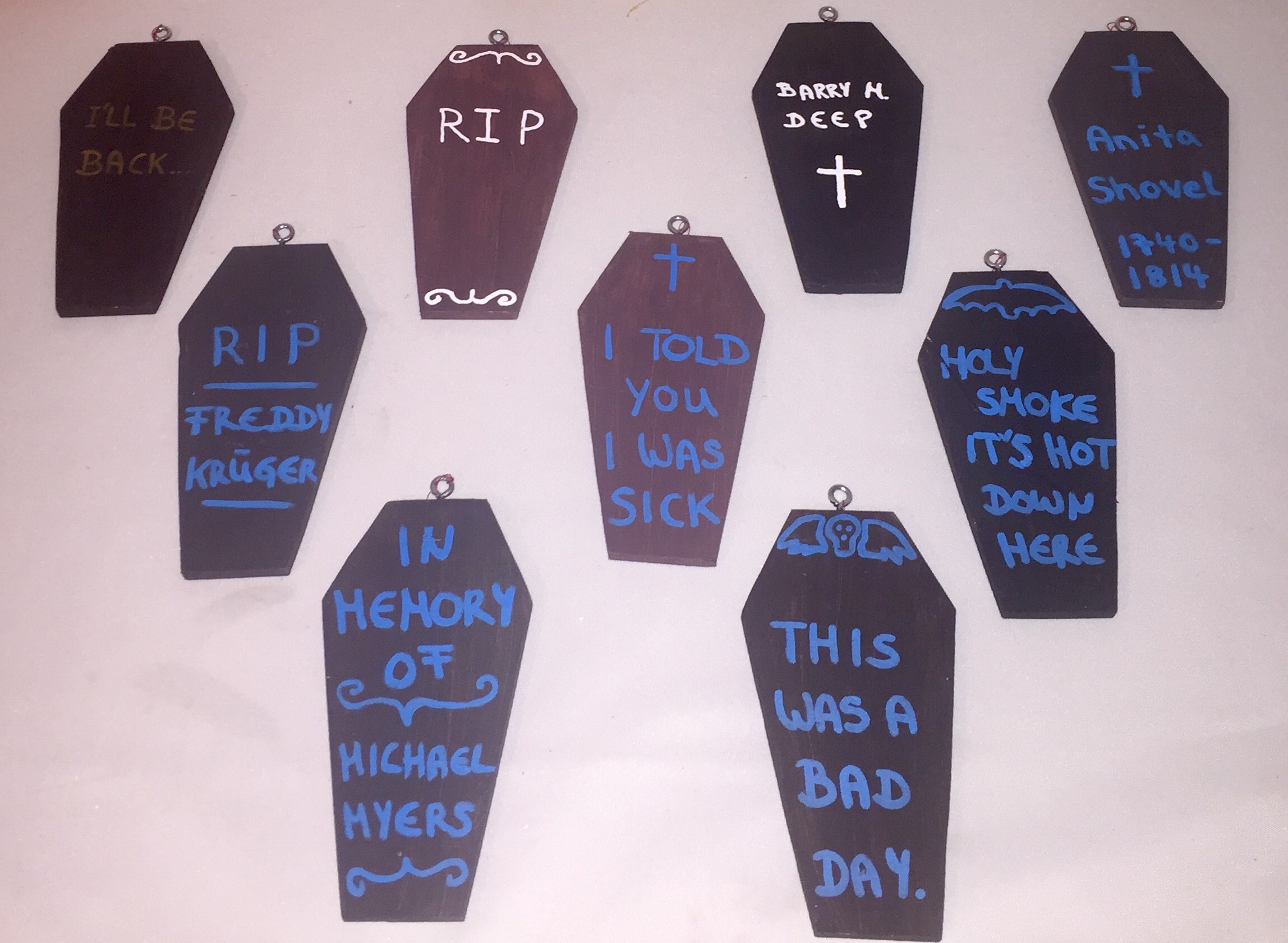 Die eigenen sich einfach perfekt, um deine Wohnung oder deine Halloweenparty zu dekorieren. Man kann die Särge auch einfach hängend im Raum verteilen oder auch als Girlande aufhängen.